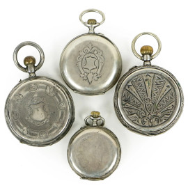 Lotto di quattro orologi da tasca, con casse in argento, Francia, XIX secolo, (difetti, mancanze, meccanismi da revisionare)