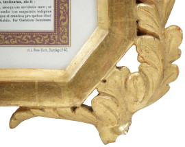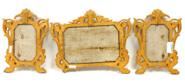 Lotto di tre cartagloria in legno intagliato e dorato, cm 37x43, XIX secolo, (difetti).