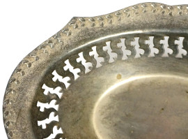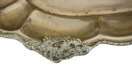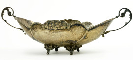 Lotto di tre centrotavola in argento e metallo argentato, decori floreali incisi e traforati, peso gr. 230 circa, (difetti).