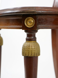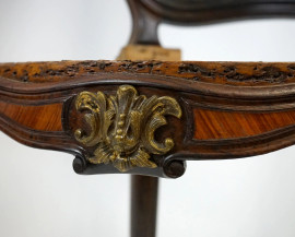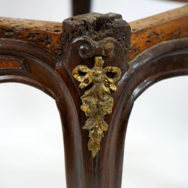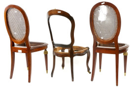 Lotto di tre sedie in legni diversi, Francia, XIX-inizi XX secolo, finiture in bronzo dorato, la coppia è marcata Gouffe Jeune, misure max cm 100x46x44, (difetti)