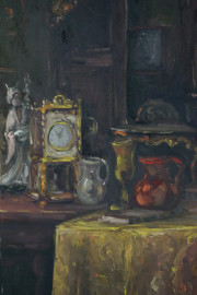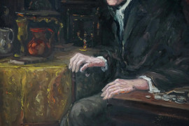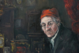L'usuraio, olio su tela, cm 70x50, recante etichetta al retro autore Bruzzone.