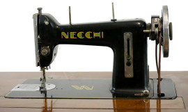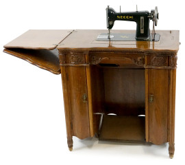 Macchina da cucire Necchi, mobiletto in noce, prima metà XX secolo, cm h 82x80x50.