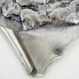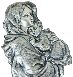 Madonna del riposo, placca in metallo, cm 30,5x15, XX secolo, (difetti)