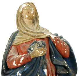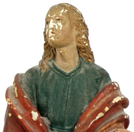 Madonna e San Giovanni sotto la croce, gruppo scultoreo in gesso dipinto, fine XIX secolo, cm h 42, (difetti, parti rotte)