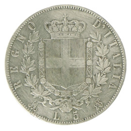 Moneta 5 Lire in argento, Regno d’Italia, Vittorio Emanuele II, 1872.