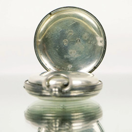 Orologio da tasca con cassa in argento inciso, Inghilterra, XIX secolo, quadrante con numeri romani, diam. cm 5, (meccanismo da revisionare)