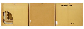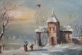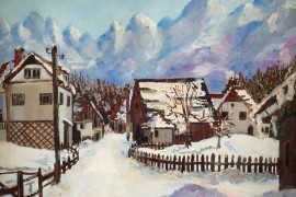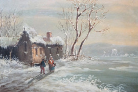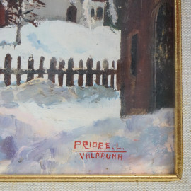 Paesaggi innevati, lotto di tre dipinti ad olio su tela, misure max cm 23,5x31, un dipinto firmato, entro cornici