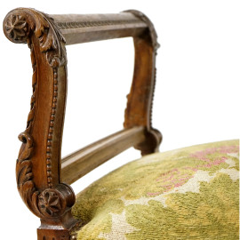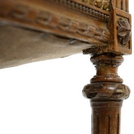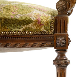 Panchetta in noce stile Luigi XVI, fine XIX-inizi XX secolo, seduta imbottita e rivestita in velluto, quattro gambe rastremate e scanalate, cm 60x66x48, (difetti, restauri)