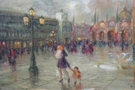Piazza San Marco, olio su cartone telato, cm 30x50, firmato Gius. Forti