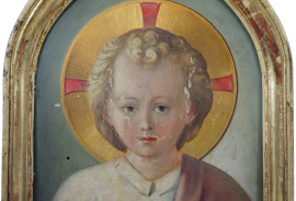 Pittore del XIX secolo, Cristo Bambino della Madonna delle Ombre, olio su tavola, cm 24,5x21, entro cornice