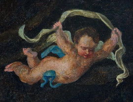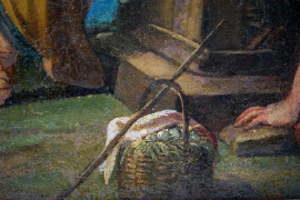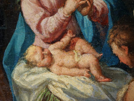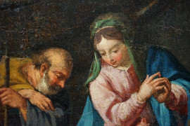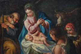 Pittore del XVII secolo, Adorazione dei pastori, olio su tela, cm 62,5x44, entro cornice