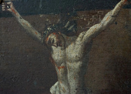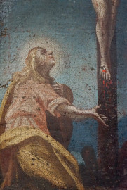 Pittore del XVII secolo, Crocifissione, olio su tela, cm 48x24, entro cornice, (lievi difetti).