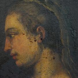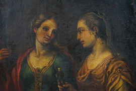 Pittore del XVII secolo, Sante Lucia e Apollonia, olio su tela, cm 75x59,5, entro cornice, (piccole cadute di colore)