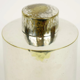 Porta thé cilindrico in metallo argentato, cm h 13, XX secolo, (difetti)