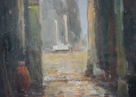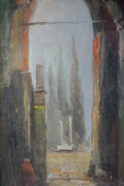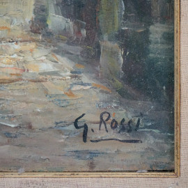 Portico, olio su cartone, cm 41x21, firmato G. rossi, entro cornice