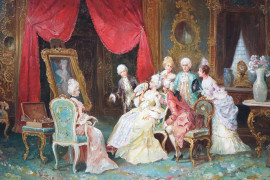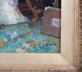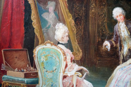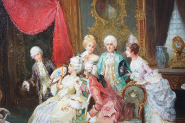 Scena settecentesca, olio su tavola, cm 32,5x48, firmato, entro cornice.