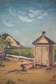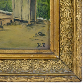 Scorcio costiero, olio su masonite, cm 20x16, siglato, entro cornice