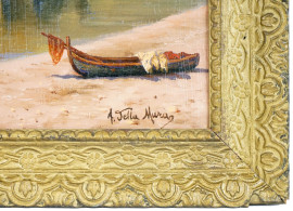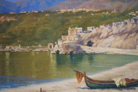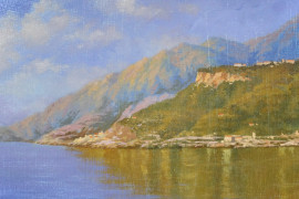 Scorcio di costa, olio su cartone, cm 47,5x22,5, firmato, entro cornice