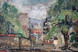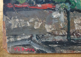 Scorcio di paese, olio su tavoletta, cm 24x32, firmato, entro cornice
