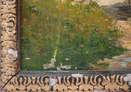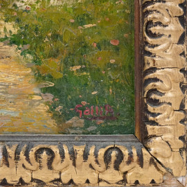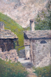 Scorcio montano, olio su cartone telato, cm 45x30, firmato Galli A., entro cornice, (piccole cadute di colore)