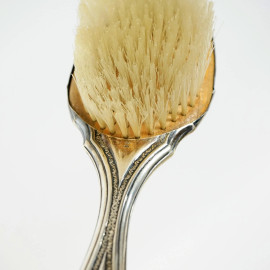 Set da toeletta rivestito in argento (4 pz.), composto da tre spazzole ed uno specchio, misure max cm 27,5x11,5, metà XX secolo, (difetti).