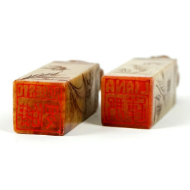 Sigilli cinesi in pietra saponaria, cm 7x1,5x1,5, arte orientale, XX secolo