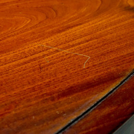 Tavolo tondo in mogano, inizi XX secolo, gamba a colonna poggiante su base circolare e quattro piedi sagomati, cm h 81, diam 134