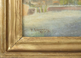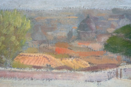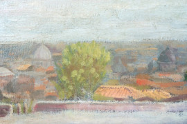 Tetti di Roma, olio su cartone, cm 30x45, firmato, entro cornice.