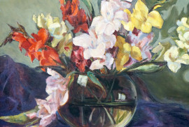 Vaso con fiori, olio su tela, cm 50x62, firmato, entro cornice