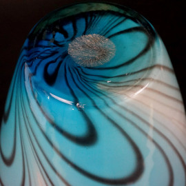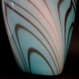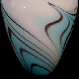 Vaso in vetro bianco, con nuance turchesi e marroni, cm h 36, XX secolo.