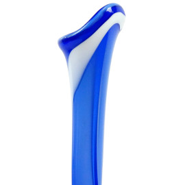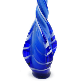 Vaso in vetro blu e bianco con lungo collo spiraliforme, cm h 65, XX secolo.