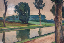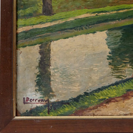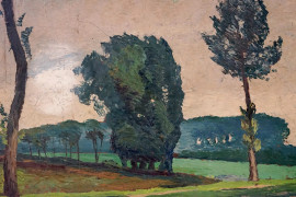 Viale alberato, olio su compensato, cm 49,5x60,5, firmato, entro cornice.