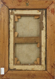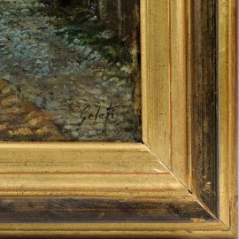 Vicolo con popolana, olio su tela, cm 53x34, firmato, entro cornice.