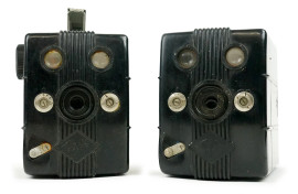 Agfa e Brownie flash, lotto di quattro macchine fotografiche anni '30 e '40, misure max cm 13x11x8, due entro custodie con tracolla in cuoio, (difetti).