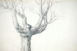 Albero, disegno a matita su carta, cm 15x21, siglato, entro cornice, (macchia sulla carta).