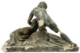 Amore e Pische da Antonio Canova (1757-1822), scultura in terracotta, cm h 26,5x43x26, inizi XX secolo, (difetti, parti mancanti).