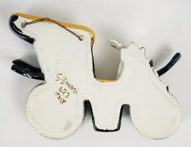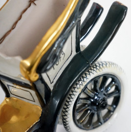 Auto d'epoca, scultura in ceramica a lustro policroma, cm 16x24, firmato G.Girardi, (difetti).
