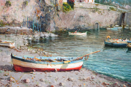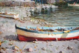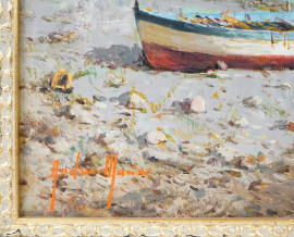 Barche a Lipari, olio su tela, cm 30x40, firmato Andrea Marini, entro cornice