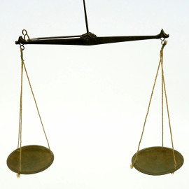 Bilancina in ottone con pesi monetali, entro scatola in legno, misure 15x22, XX secolo, (segni del tempo).