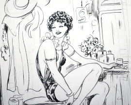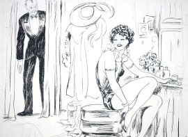 Nel foyer, tecnica mista su carta, cm 27x18