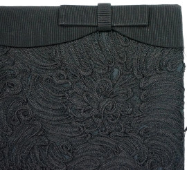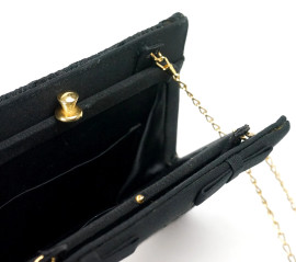 Borsetta da sera in stoffa nera ricamata, cm h 16,5x19,5x3,5, tracolla doppia in metallo dorato, (segni di utilizzo).