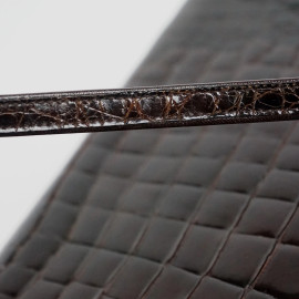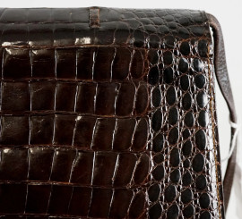 Borsetta rigida in pelle di coccodrillo color marrone, cm h 18x29x10, manico cm h 47, (segni di utilizzo)