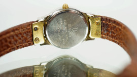 Bulova, orologio da polso da donna, cassa in acciaio, cinturino in pelle marrone, (meccanismo da revisionare, segni di utilizzo)