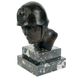 Busto di Mussolini, scultura in bronzo, cm h 19, base in marmo, firmato Rossi.