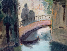 Canale di Venezia, olio su tavola, cm 46,5x30,5, firmato a tergo, entro cornice.