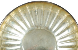 Centrotavola in argento sbalzato con corpo baccellato, Firenze, seconda metà XX secolo, cm h 6,5x18, peso gr. 210, (lievi difetti).