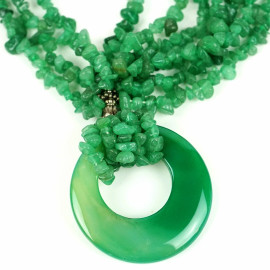 Collana in pietra dura verde, chiusura in metallo argentato, lunghezza cm 43