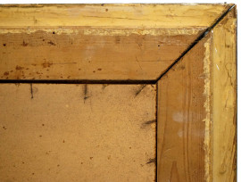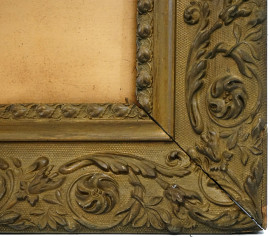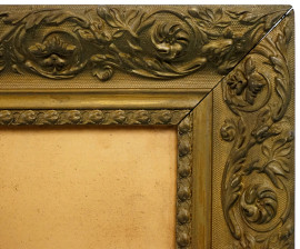 Coppia di cornici in pastiglia e legno dorato, XX secolo, misure ingombro cm 48,5x79,5, misure luce cm 30x61