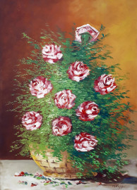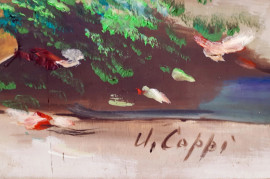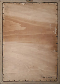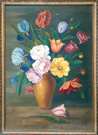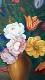 Coppia di dipinti raffiguranti vasi con fiori, 1949 e 1950, olio su legno, ciascuno cm cm 70x50, uno dei due con cornice