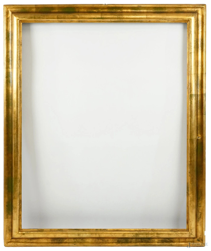 Cornice in legno intagliato e dorato, XX secolo, misure ingombro cm 144x117, misure luce cm 100x125